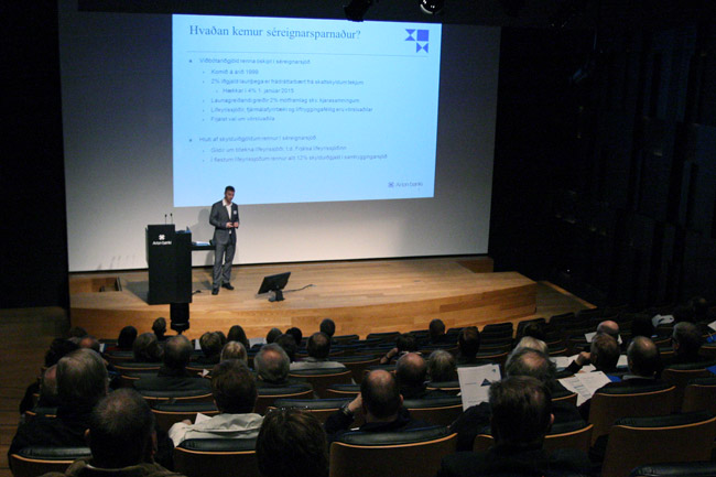 Margrét Sveinsdóttir, framkvæmdastjóri eignastýringarsviðs bauð gesti velkomna. Fyrirlesarar voru Arnaldur Loftsson, framkvæmdastjóri Frjálsa lífeyrissjóðsins og Theódór Friðbertsson, sérfræðingur í Eignastýringu Arion banka.