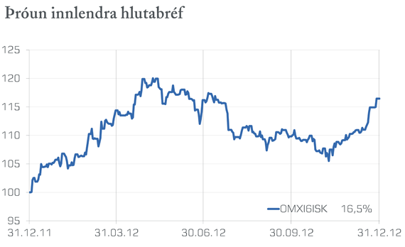 Gerðar voru fjórar breytingar á stýrivöxtum árið 2012, samanber þrjár breytingar árið á undan. Peningastefnunefnd Seðlabankans hækkaði vexti um 0,25 prósentustig í mars og voru vextirnir því komnir í 5%. Um miðjan maí hækkaði peningastefnunefndin vextina um 0,5 prósentustig, í 5,5%. Vextir voru svo hækkaðir um 0,25 prósentustig í júní og aftur í nóvember. Í árslok stóðu vextirnir því í 6% og höfðu verið hækkaðir alls um 1,25 prósentustig á árinu. Gengi krónunnar veiktist um 6,3% á síðasta ári en gengi krónunnar hóf að styrkjast á vormánuðum eftir að hafa veikst töluvert fyrstu þrjá mánuði ársins. Styrking krónunnar gekk svo snöggt tilbaka en krónan hóf að veikjast á nýjan leik í ágúst mánuði.Verðbólga síðasta árs mældist 4,5% og reyndist það vera meiri verðbólga en markaðsaðilar áttu almennt von á. Verðbólgan náði hámarki í upphafi árs þegar 12 mánaða breytingin mældist yfir 6%. Þrátt fyrir háa verðbólgu í upphafi árs komu verðbólgumælingar í júlí og ágúst markaðsaðilum nokkuð á óvart en vísitalan lækkaði um 0,7% annars vegar og 0,2% hins vegar. Meðalvísitala neysluverðs árið 2012 var 5,2% hærri en meðalvísitalan 2011. Samsvarandi breyting var 4,0% árið 2011 og 5,4% árið 2010.