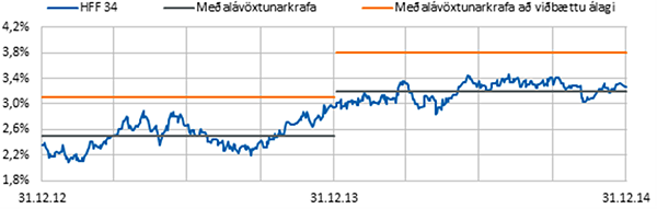 Hér fyrir neðan er mynd sem sýnir þróun á ávöxtunarkröfu HFF15034 árin 2013 og 2014.
