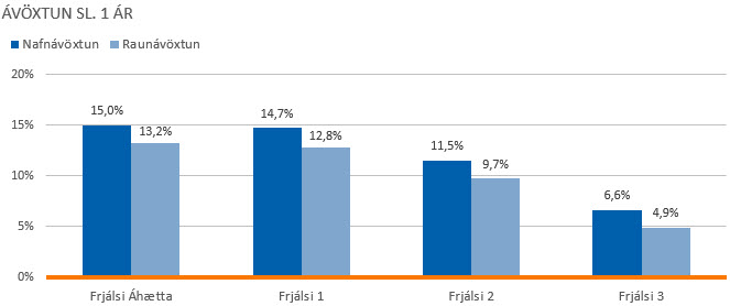 Nafnávöxtun fjárfestingarleiða Frjálsa lífeyrissjóðsins síðastliðið ár, miðað við lok júní, var á bilinu 6,6% til 15,0%. Ef meðalávöxtun síðustu fimm ára er skoðuð má sjá að ávöxtun er á bililnu 6,8% til 10,6%. Nánari upplýsingar um ávöxtun sjóðsins er að finna hér.