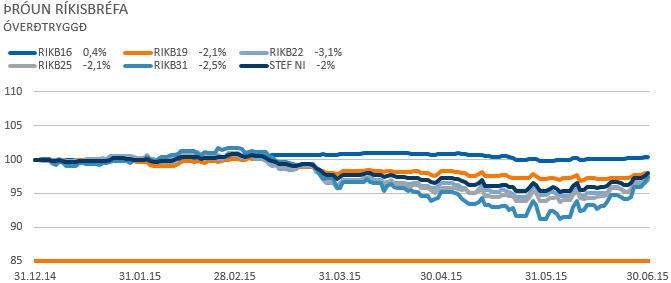 Annar ársfjórðungur hefur litast af áframhaldandi verðbólguáhyggjum fjárfesta og væntingum um frekari hækkun stýrivaxta. Ávöxtun af óverðtryggðum skuldabréfum hefur verið jákvæð um 0,6% á öðrum ársfjórðungi og verðtryggð skuldabréf hafa skilað 1,0% ávöxtun. Frá áramótum hafa verðtryggð skuldabréf þó skilað meiri ávöxtun eða 8,2% á meðan óverðtryggð skuldabréf hafa skilað neikvæðri ávöxtun sem nemur -2,0%. Þróunin á næstu mánuðum mun að miklu leyti ráðast af verðbólguhorfum og því hverjar væntingar fjárfesta eru um frekari vaxtahækkanir á næstu misserum. Áhrif kjarasamninga á verðlag og framkvæmd losun fjármagnshafta mun því ráða miklu um þróun skuldabréfamarkaðarins þegar líður á árið.