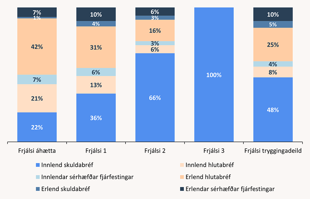 Markmið um hlutfall eignaflokka hjá Frjálsa áhættu eru eins og hér segir: