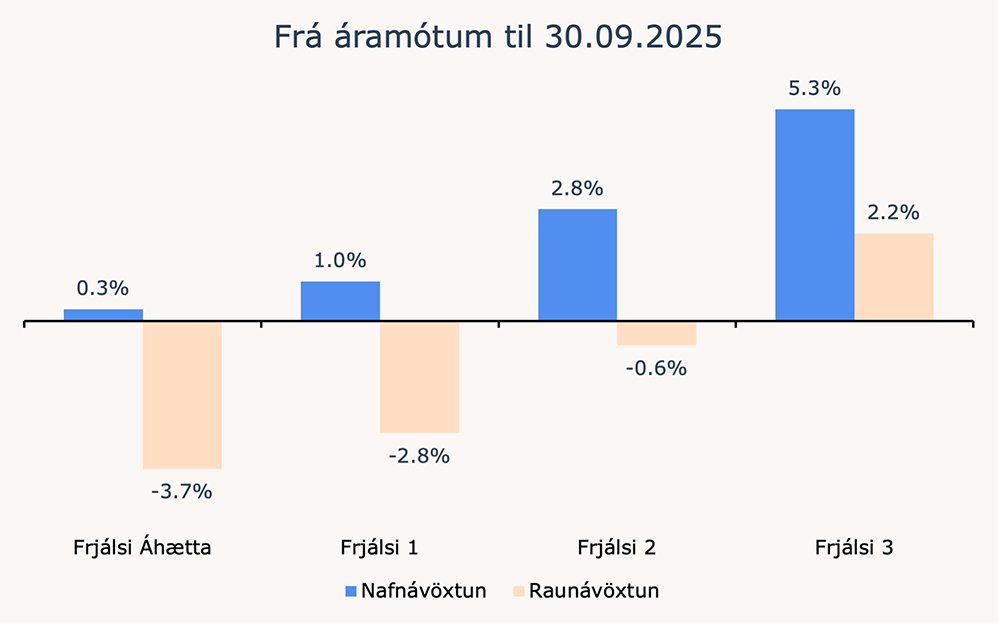 Fyrstu níu mánuðir ársins 2025 hafa einkennst af aðlögun eftir viðburðaríkt ár 2024. Þótt vaxtastig sé enn hátt og þrálát verðbólga, þá hefur öflug ferðaþjónusta skapað jákvæðari markaðsaðstæður. Peningastefnunefnd Seðlabanka Íslands hefur haldið stýrivöxtum óbreyttum í 7,5%, í samræmi við væntingar markaðarins og næsta vaxtaákvörðun peningastefnunefndar verður 19. nóvember nk. Verðbólga sl. 12 mánuði mælist nú 4,1% (3,2% án húsnæðis) og hefur hjaðnað milli ára þó hún sé enn yfir markmiði Seðlabankans.