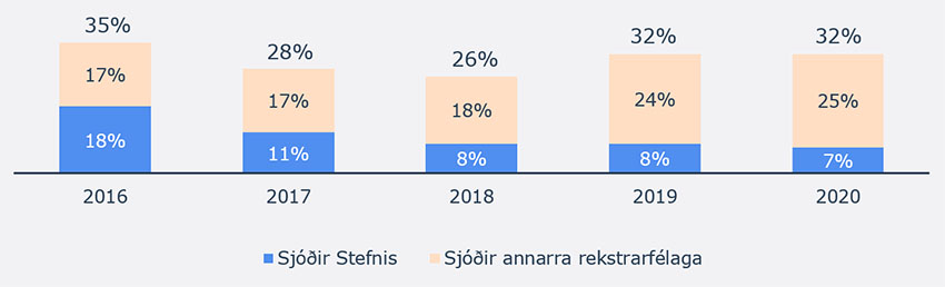 Stefnir er eitt af stærstu sjóðastýringarfyrirtækjunum á innlendum markaði. Um 31,5% eigna Frjálsa er í sjóðum. Þar af er 6,7% í sjóðum Stefnis eða um 20% af sjóðaeign Frjálsa. Um 80% af sjóðaeign Frjálsa er í sjóðum annarra rekstrarfélaga, svo sem hjá Landsbréfum, Júpíter, Akta, Íslenskum verðbréfum, Summu og Íslandssjóðum ásamt erlendum sjóðastýringarfyrirtækjum.
