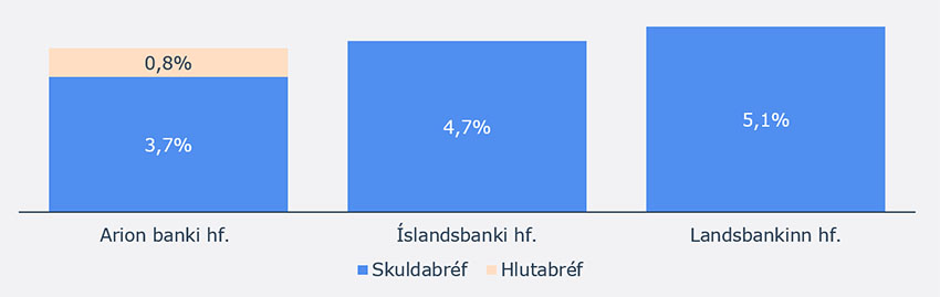 Skuldabréf útgefin af Arion nema um 3,7% af eignasöfnum, skuldabréf útgefin af Landsbankanum 5,1% og Íslandsbanka 4,7%. Alls á sjóðurinn um 10,5 milljarða í skuldabréfum útgefnum af Arion banka og um 28 milljarða í skuldabréfum útgefnum af Íslandsbanka og Landsbankanum.