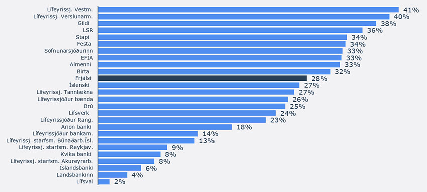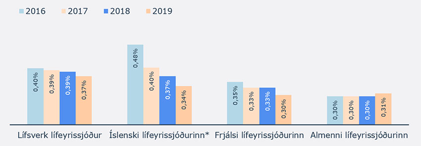 Heildarkostnaður lífeyrissjóða skiptist í beinan og óbeinan kostnað. Beinn kostnaður sem hlutfall af hreinni eign var lægri hjá Frjálsa en Almenna á árinu 2019, eða um 0,30% samanborið við 0,31% miðað við meðalstöðu hreinnar eignar á markaðsvirði. Hefur þessi kostnaður lækkað hjá Frjálsa undanfarin ár.