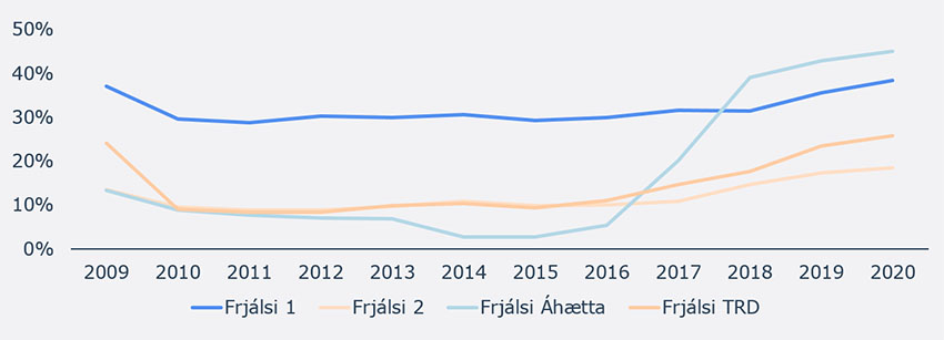Hlutfall sjóða af heildarverðmæti Frjálsa