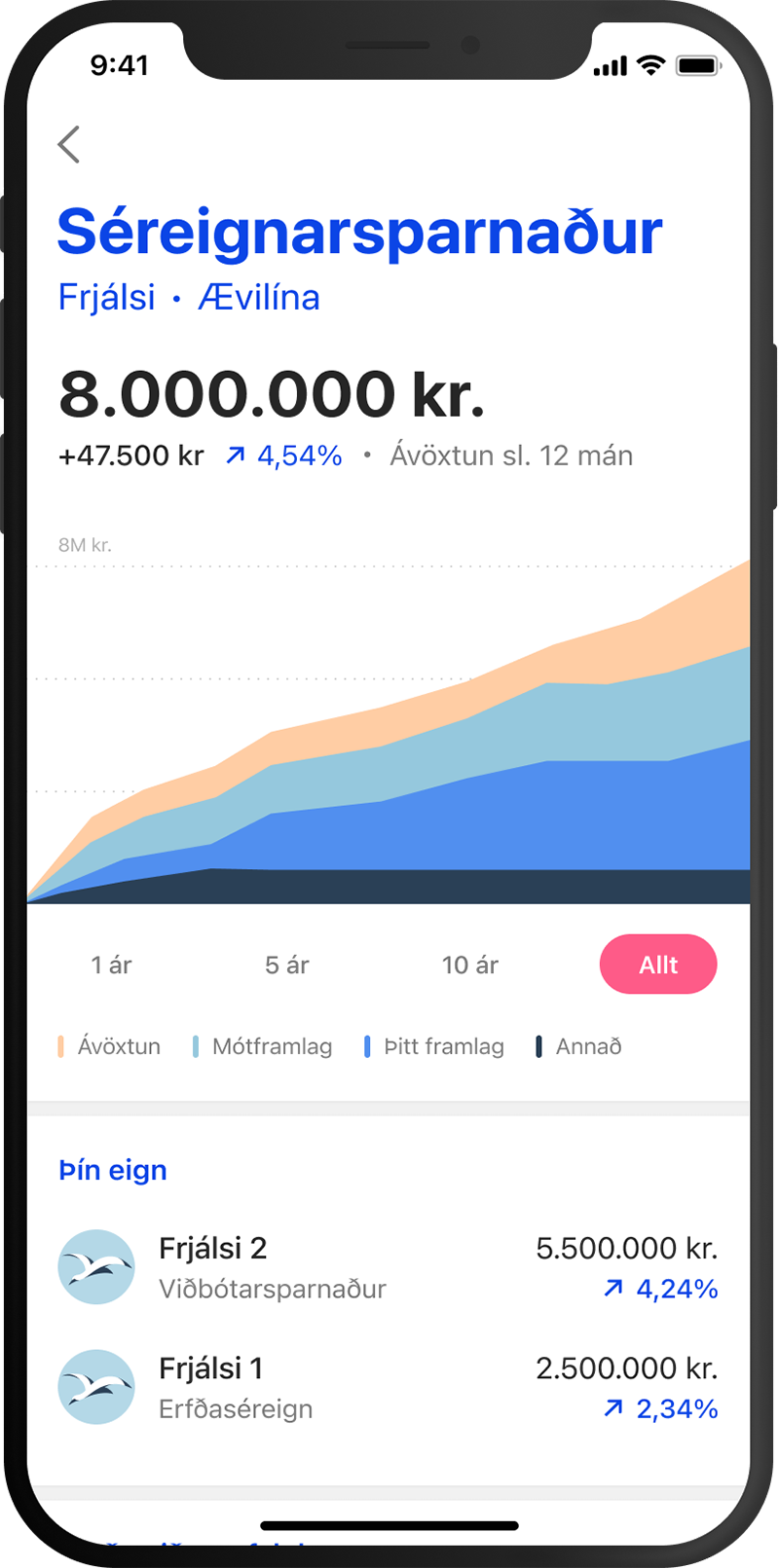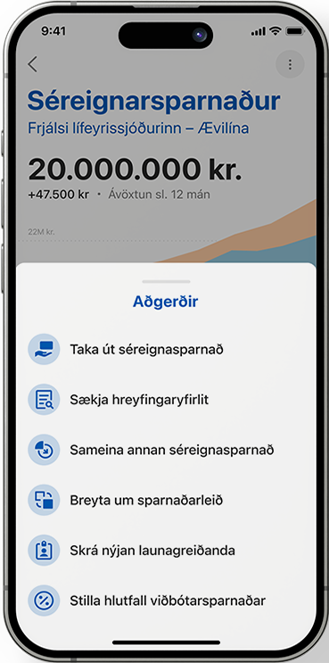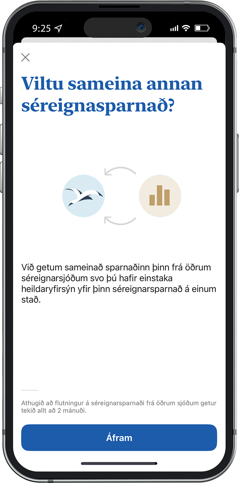 Smella á punktana efst í hægra horninu. Velja Sameina annan séreignarsparnað. |