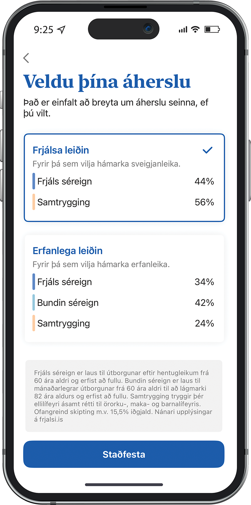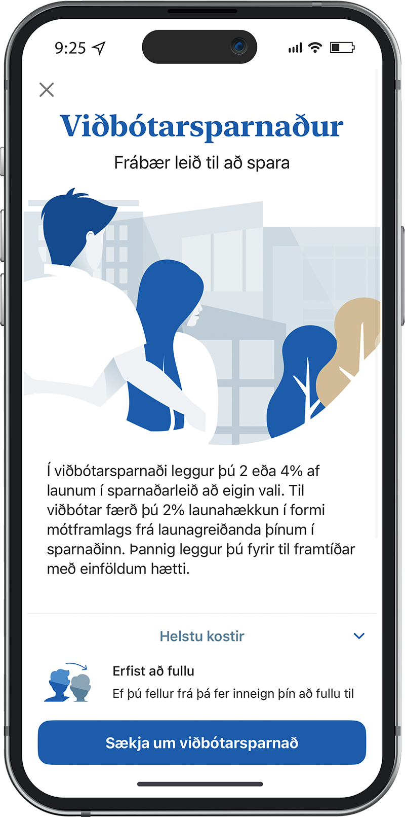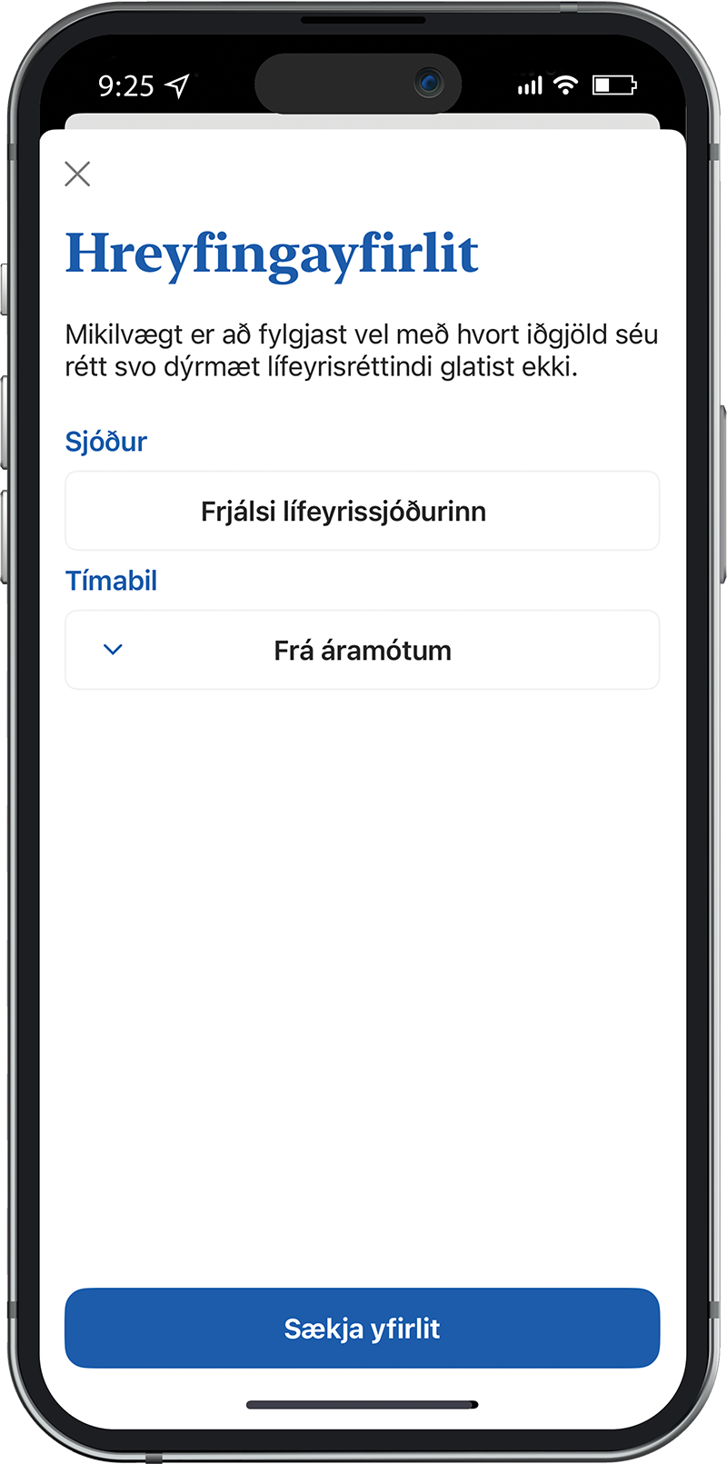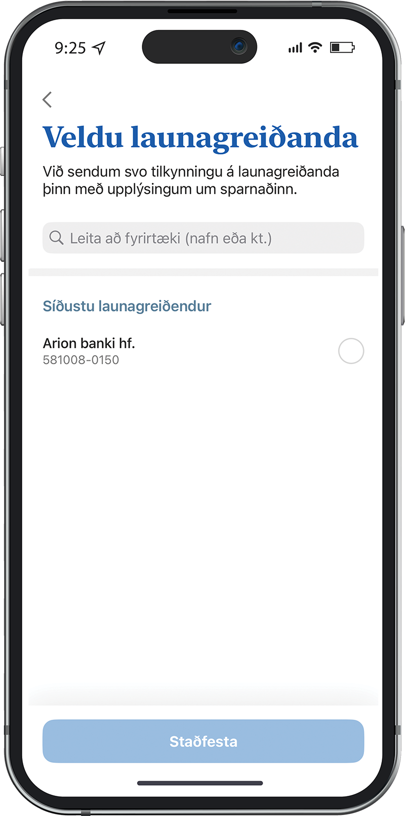 Smella á Sækja um lífeyrissparnað undir flipanum Meira og Lífeyrir í Arion appinu. Velja Skyldusparnað. |