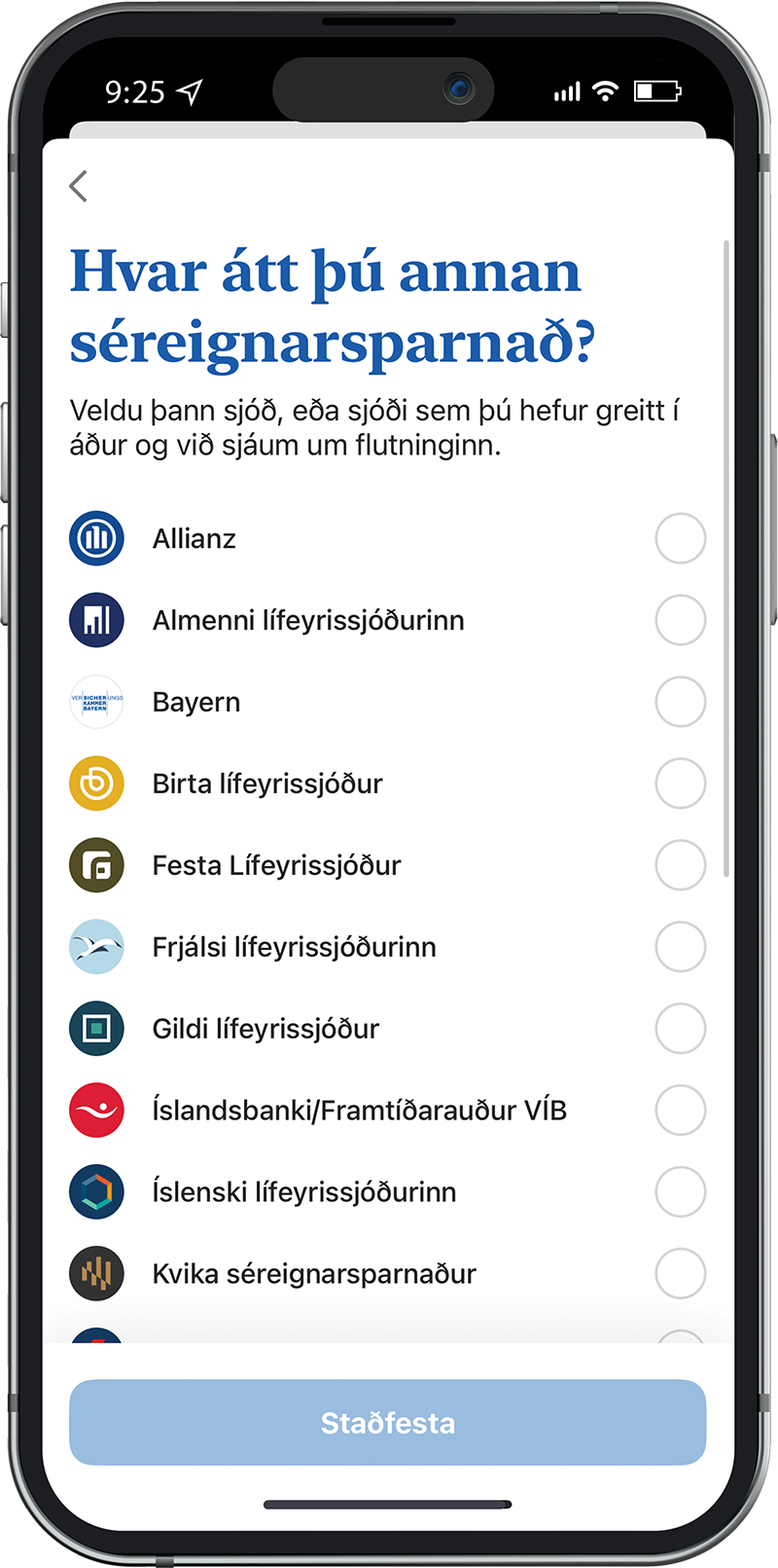 Velja þá sjóði sem þú vilt flytja séreign frá og/eða segja upp samningi við. |