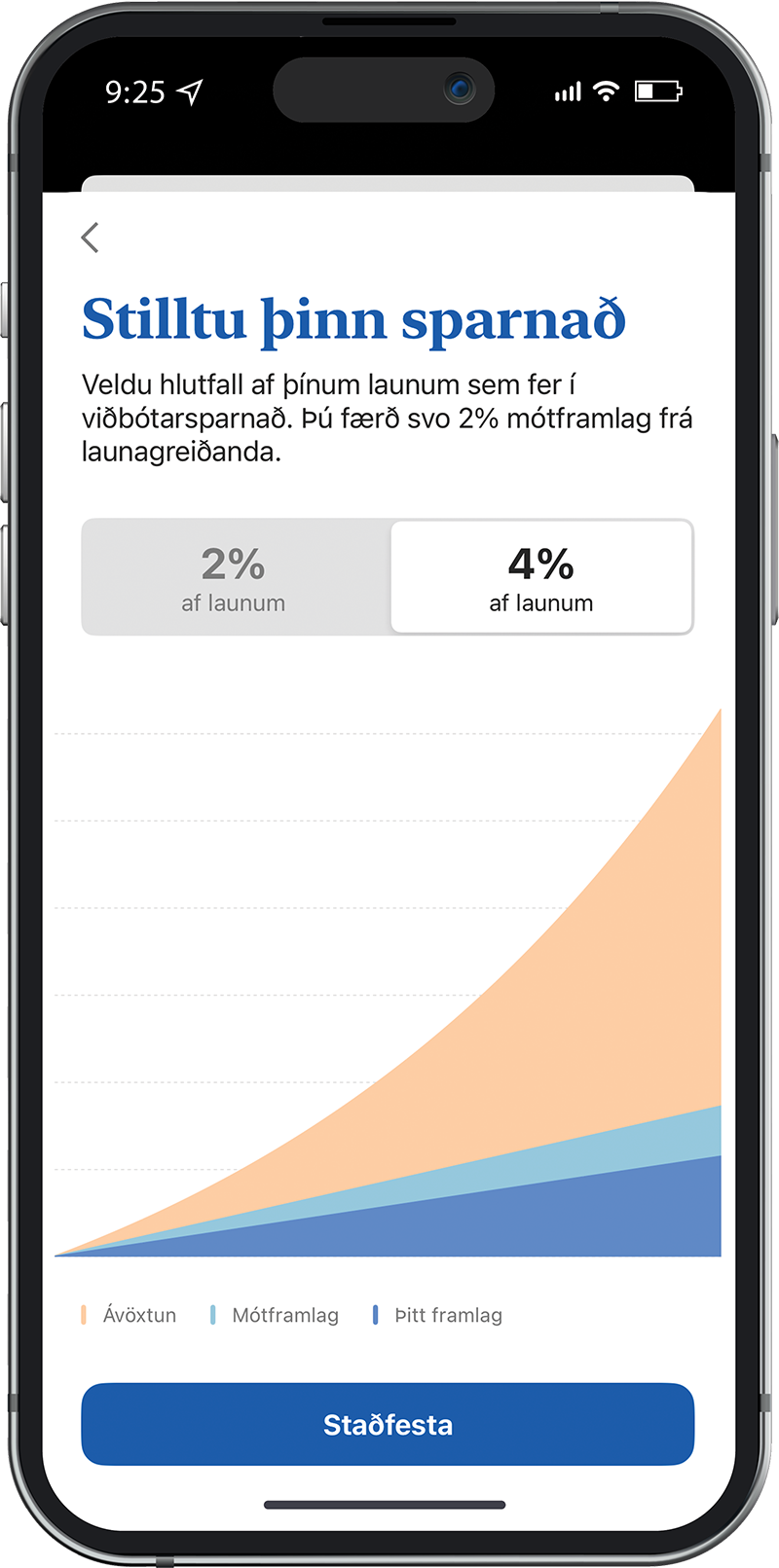 Smella á punktana efst í hægra horninu. Velja Stilla hlutfall viðbótarsparnaðar. |