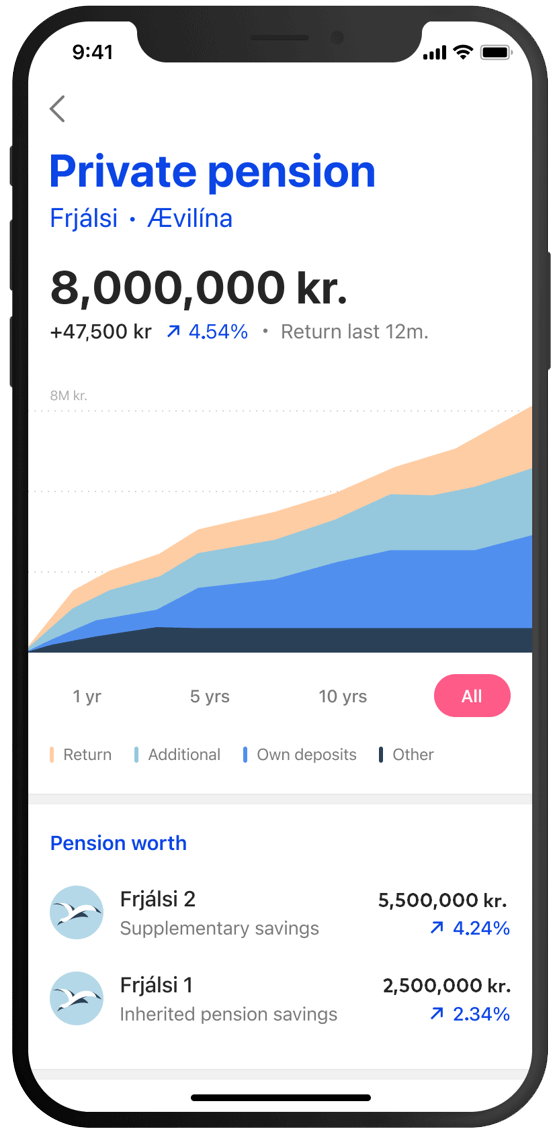 Możesz podpisać umowę o dodatkowy fundusz emerytalny w Frjálsi w aplikacji Arion. Wówczas odkładasz 2–4% swojego wynagrodzenia na fundusz i otrzymujesz 2% podwyżki w formie składki pracodawcy, która też jest przeznaczana na fundusz. Dodatkowy fundusz emerytalny jest w pełni dziedziczny i można go wykorzystać bez opodatkowania do sfinansowania mieszkania.